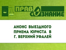 Челябинская региональная общественная социально-правозащитная организация «Правосознание» продолжает выездные приемы юристов в рамках проекта «Безопасность сделок с жильем», который был поддержан грантом Президента Российской Федерации на развитие гражданского общества, предоставленного Фондом президентских грантов. С целью обеспечения доступности правовой помощи ранее уже состоялись выездные приемы в г. Катав-Ивановске, в Сосновском районе, в г. Юрюзани и г. Усть-Катаве. В этот раз прием состоится в г. Верхний Уфалей Челябинской области.